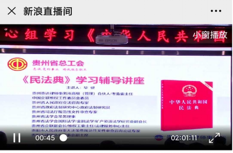 贵州省总工会办公室按照《贵州省学习宣传<中华人民共和国民法典>工作方案》要求和省工会党组理论学习中心组安排,定于9月18日举办学习宣传《中华人民共和国民法典》专题讲座, 天美传播媒体 积极组织教职工进行线上观看,部分学习情况如下: