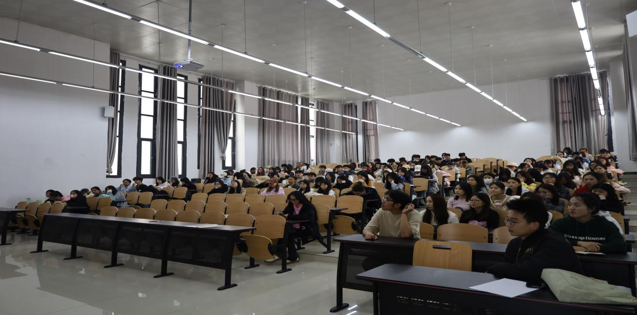 )以六字箴言“选择、规划、坚持”展开分享。她首先提到,“选择”是考研之路的第一步,意味着选择学校和专业时,我们要全面考虑、慎重决策;随后,“规划”是关键,她强调了学习过程中合理规划的重要性,有助于提升学习效率;最后,“坚持”则是对每个考研学子的深切寄语,鼓励大家一定要持续努力、不言放弃。