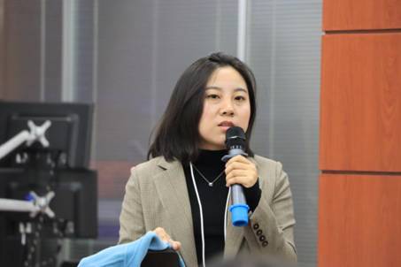 随后,当代先锋网微信公众号副主编王琳向学生演示现场智能写稿、智能化审校、编辑发送一体化的“中央厨房”运作流程,让学生们亲身感受“中央厨房”的强大功能。