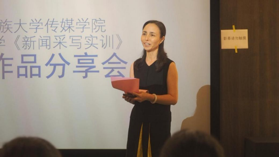 (图为贵州广播电视台融媒体中心采编部副主任苏姝现场点评学生作品)