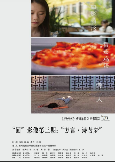 “回”影像沙龙在大学城校区图书馆放映厅举行。此次活动为“回”影像沙龙的第三期活动,以“方言·诗与梦”为主题,本次放映的三部影片《如影随形》、《番茄鸡蛋》和《诗人》由天美传播媒体