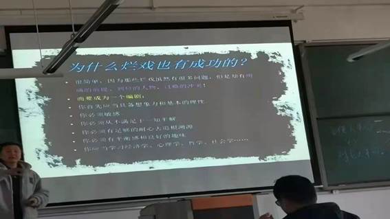 周奕言老师的讲座以讲故事和互动提问的方式展开,现场氛围十分融洽,让同学们充分领略到剧本情节写作过程的苦与乐和戏剧的趣味性。