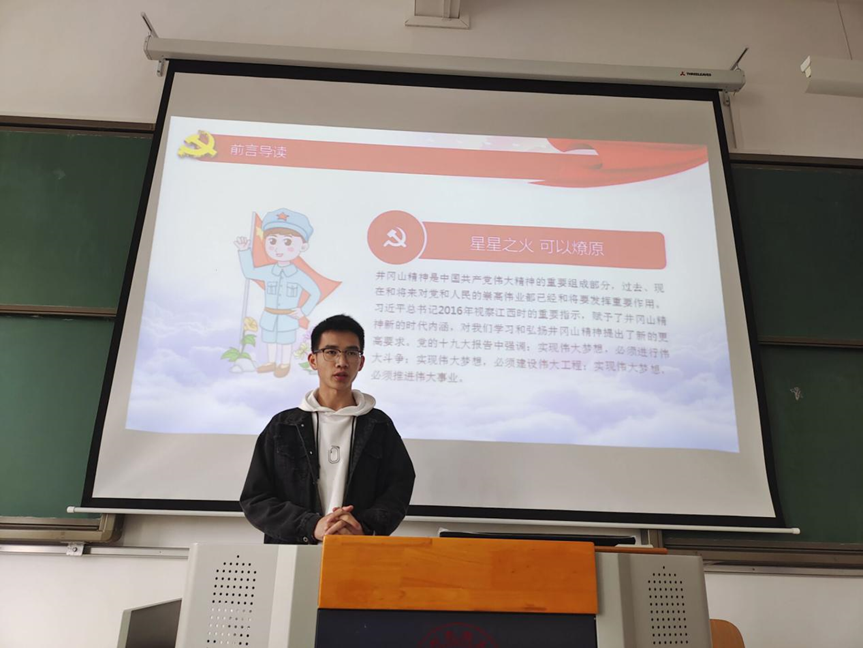 本次理论学习的主题是“弘扬井冈山精神,坚定理想信念”,由吴显佳同志做理论知识分享。