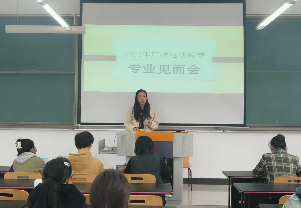广播电视编导系在南校区第一教学楼C120举行2024级广播电视编导系专业见面会。广播电视编导系老师廖璇、严思嘉、宋波、龙丽双、普天行、蒲夏青及2024级广播电视编导系新生参加活动,见面会由2023级广播电视编导专业研究生李欣蔓主持。