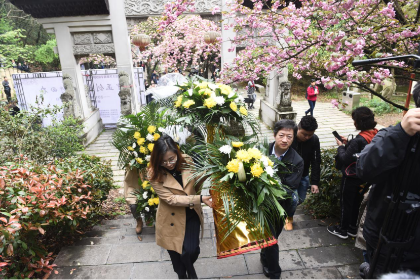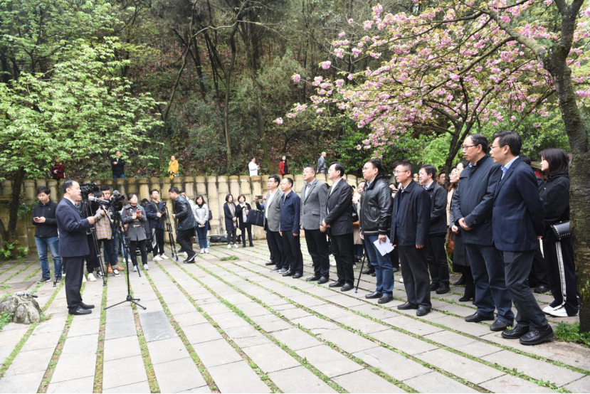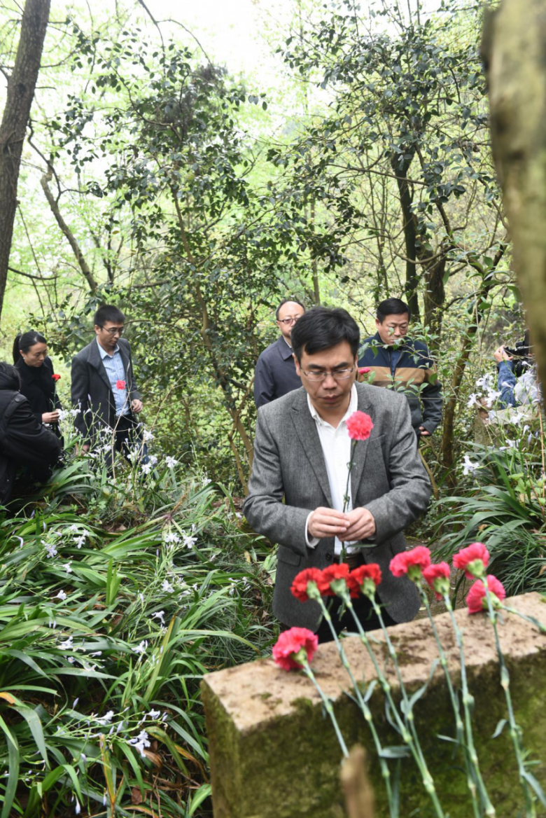 师生代表和贵州省、贵阳市主要新闻单位编辑记者代表一同到黔灵山深切缅怀我国现代新闻教育事业的重要奠基者谢六逸先生。