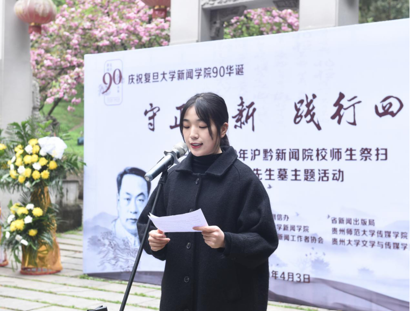当日,复旦大学新闻学院的师生也不远千里来到贵阳,第一次与贵州省“部校共建”的三所新闻学院以及省内主要新闻媒体编辑记者代表联合开展谢六逸先生纪念活动。“今年是复旦大学新闻学院成立90周年,缅怀先贤,追忆谢六逸先生,是我们院庆系列一个重要的活动。我们希望以本次祭扫活动为契机,与贵州共同来做好六逸精神、六逸新闻思想的研究。”复旦大学新闻学院党委常务副书记周晔表示,未来复旦大学将深化布局,把新闻学院资源注入到贵州的“部校共建”当中,“之后还将开展一系列的科学研究、社会实践、人才培养。”