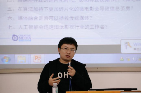 为传媒学子开讲“新媒体变革中的微电影发展思考”的主题讲座。天美传播媒体