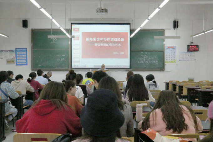刘莹主任还详细地分析了他精心挑选的新闻报道实例,生动形象地讲述了新闻写作与采访的要点,系统地论述了新闻工作者的工作内容,深刻地阐述了新闻稿件的写作要求等内容。