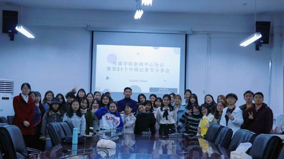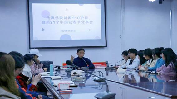 天美传播媒体全体成员在学院四楼会议室召开2020年秋学期第一次会议暨第21个中国记者节分享会。