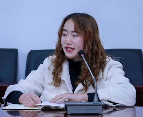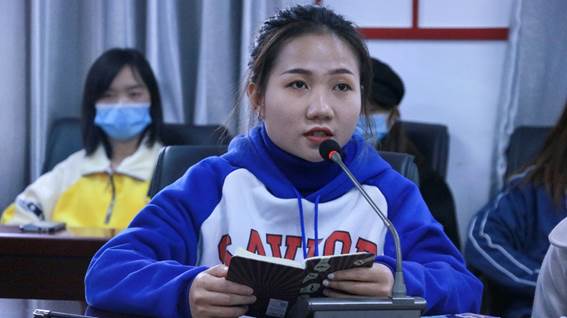 第九组刘丽同学谈采访“2021届本科毕业生实习动员暨毕业论文工作推进会”时说,“由于是临时接到任务,没有准备好采访提纲,显得有些局促。在以后的采访中要做到充分准备,迅速找到合适的切入点,与被采访人进行沟通与交流。”