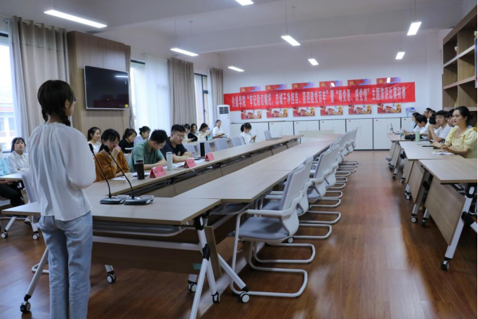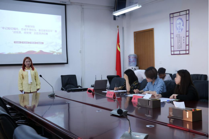 “牢记殷切嘱托、忠诚干净担当、喜迎建党百年”暨“颂党恩、感党情”主题演讲比赛初赛在党员活动室和403会议室举行,孙春艳、梅洋、姚琪、苟家容、普天行、潘黎六位教师担任评委。