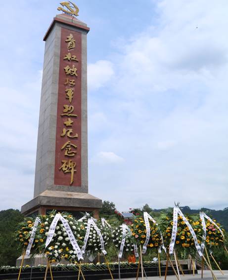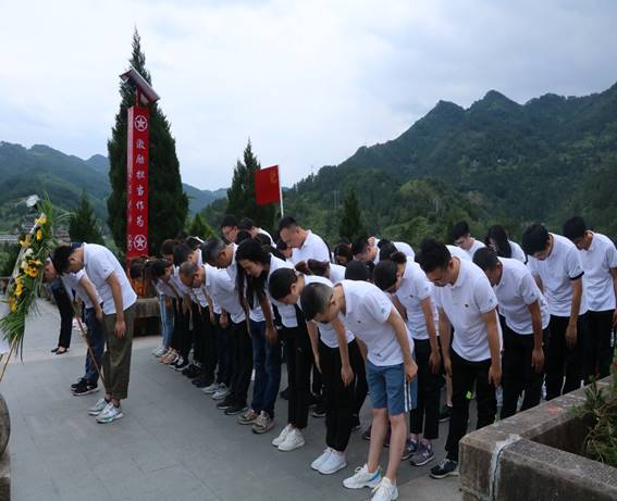 “青山埋忠骨,后人怀感恩,今天我们一起来到青杠坡红军烈士纪念碑,缅怀革命先烈。”习水县土城镇四渡赤水纪念馆的解说员税慈波庄严地对游客们说到。“首先举行简单的祭奠仪式,向红军烈士行三鞠躬礼”,话音落罢,游客们整齐地向纪念碑弯下了腰。
