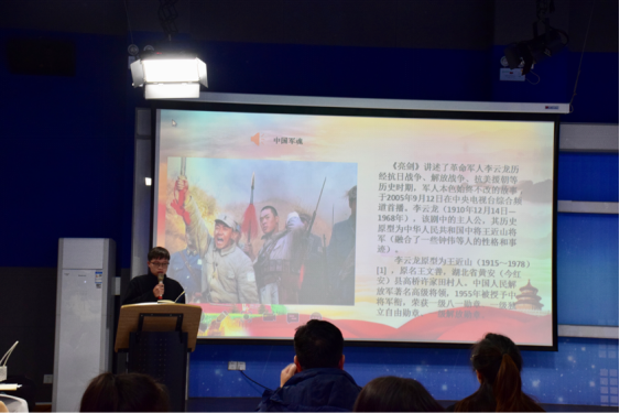 新闻传播学专业的杨柳柳同学借助红军题材电视剧《亮剑》,向大家介绍了主角李云龙心系家国、胸怀民族大义的故事。这与范长江不顾个人安危,坚决北上报道红军长征,敢于在当时国民政府统治下的《大公报》上系统地介绍红军长征情况,宣扬全民抗日的创举相呼应。