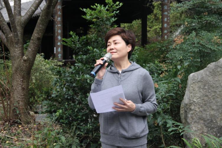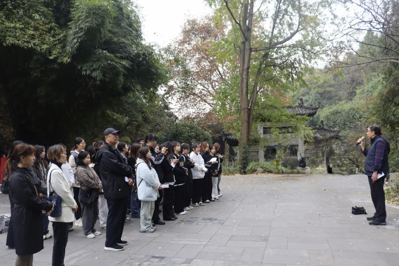 谢六逸新闻实验班师生在黔灵山公园东大门内小广场,举行了庄重的祭扫谢六逸先生墓主题活动。