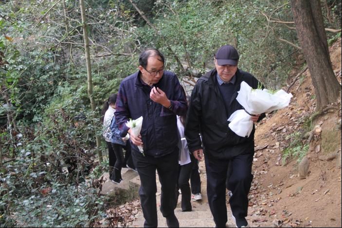 师生代表与谢军先生一起向谢六逸先生墓敬献鲜花和花篮