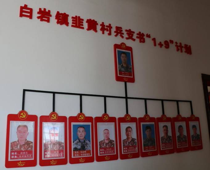 2018年,杨守亮当选为白岩镇韭黄村党委书记,成为了一名“兵支书”。这一年,在中共普定县委、普定县人民政府和普定县人民武装部的领导下,杨守亮一手扶起了韭黄村的“兵支书之家”,如今的“兵支书之家”已经有退役军人74人,但他的工作仍然没有就此停止。2019年到2020年,他接连被表彰为全国模范退役军人、2020年度“最美退役军人”。在“1+9”模式下,杨守亮一个兵支书带领九个优秀退伍军人,一个兵支书带领九个有能力的人,不管是致富能手还是销售能手,这些人都被编入九个编组、九个班,每个人发挥自己的特长,“懂营销的出去跑市场,懂技术的钻进种植园”。杨守亮看着墙上的照片,向我们说出了韭黄产业的重要“成功秘诀”。