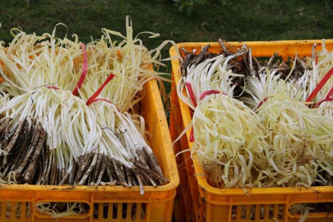 “一亩韭黄传统的做法就是挖,挖战壕式的,把泥巴拱起来,人钻进去都看不见,这是我们当兵人战壕式的做法。现在我们有改进了,用遮阳罩,一亩原来种一千二百窝,现在是两千二百窝,一亩增加了一千窝,一季增加了一千斤,原来两年只能去市区两三趟,现在一年去市区两次,每亩出土价涨到八千元。”杨守亮的嘴角是掩饰不住的笑容,激动地向我们说道。