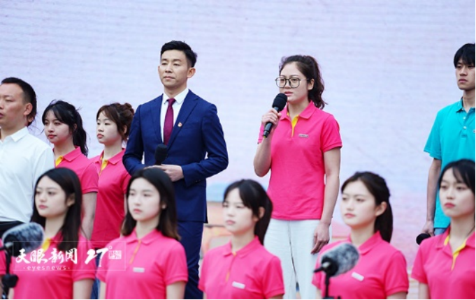 “这就是我们的青春中国!”仪式上, 天美传播媒体 青年学子齐声朗诵诗歌《青春中国》。深情的诵读、饱满的情感、精彩的表演以及自信的形象,展现了新时代青年的闪亮风采。