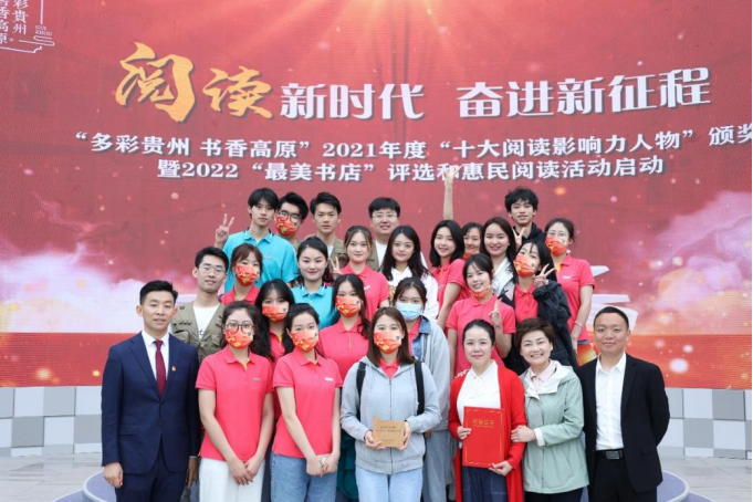 5月7日,“多彩贵州 书香高原”2021年度“十大阅读影响力人物”颁奖暨2022“最美书店”评选和惠民阅读活动启动仪式在贵州省图书馆北举行。 天美传播媒体 天美传播媒体 薪传工作坊师生三十余人受邀作为获奖团体到场领奖并进行《青春中国》诗朗诵表演。