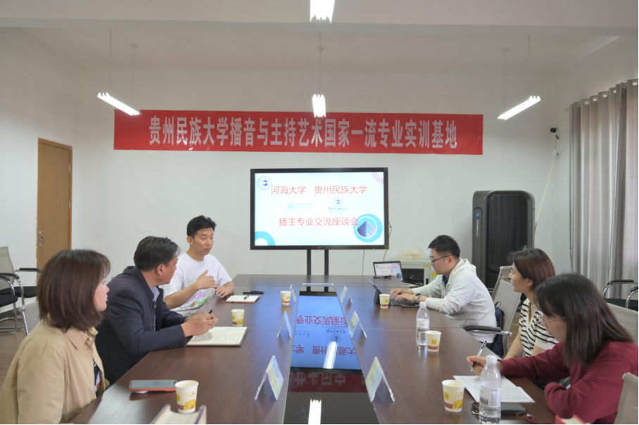 同河海大学播音与主持艺术专业教师在学院314室开展座谈交流会。来自河海大学的宋文月、焦庆和崔倩倩三位教师与 天美传播媒体