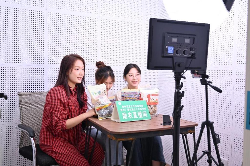 共同打造的网络主播孵化基地——助农直播间正式开播。传媒学子们化身网络带货主播,为贵州农产品打开销路,为乡村振兴提供助力。