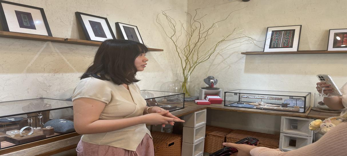 那么该如何传承苗银这个非遗呢?徐靖回答:“我们现在做的产品也挺受欢迎的,应该是这个青岩古镇销量比较好的那一类了,我们现在也非常欢迎各大高校的实习生来我们这里进行实习,我们也会将自己的技艺毫无保留的传授给他们,让他们逐渐爱上苗银这个非遗,让他们在现在形势严峻的就业市场找到一席之地的。”
