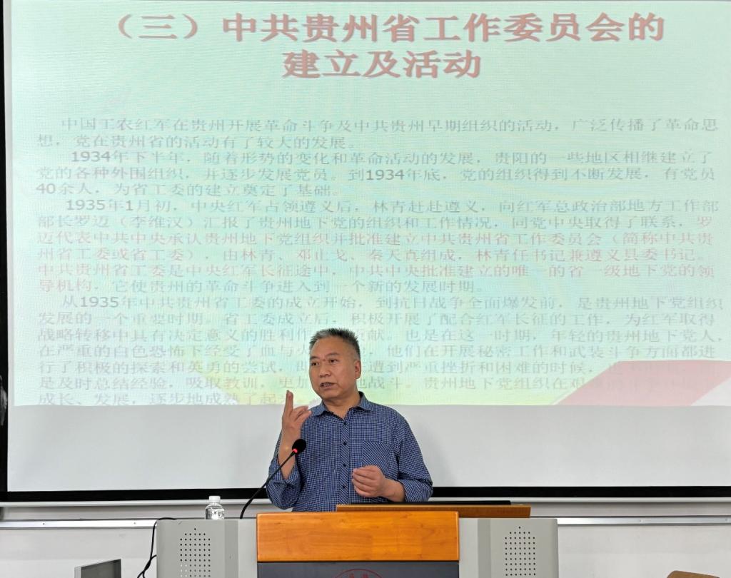 讲座伊始,向开义主任以红军在贵州的奋斗历程作为切入点,生动地叙述了红三军、红六军、红七军、红八军以及中央红军在贵州长征途中的英勇牺牲和无私奉献。这些红军战士们在贵州大地上播下了革命的火种,建立了革命根据地,壮大了革命武装的力量。