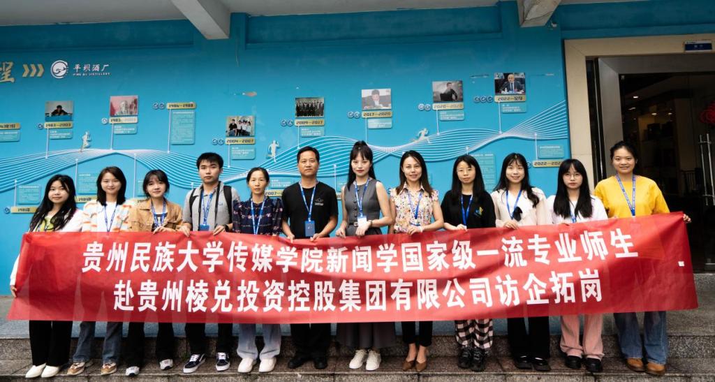 新闻学国家级一流专业负责人刘祥平教授、欧继花副教授带领2020级新闻实验班部分学生赴贵州棱兑投资控股集团有限公司安顺市平坝酒厂开展访企拓岗活动。